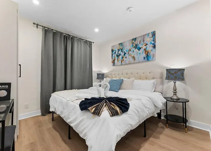 Situada a una distancia de 7 km de la Torre CN de Toronto, esta casa de vacaciones se encuentra al lado del Callejón del Graffiti. Los huéspedes pueden visitar la Plaza Nathan Phillips, que está a poco más de 15 minutos en coche de esta villa, o visitar el Estadio Rogers Centre, que está a 20 minutos en coche. La Villa High Park Retreat: Modern Styled 2B/2B In Toronto! está a una distancia de 8 km de un lugar tan familiar como el Acuario Ripley de Canadá.